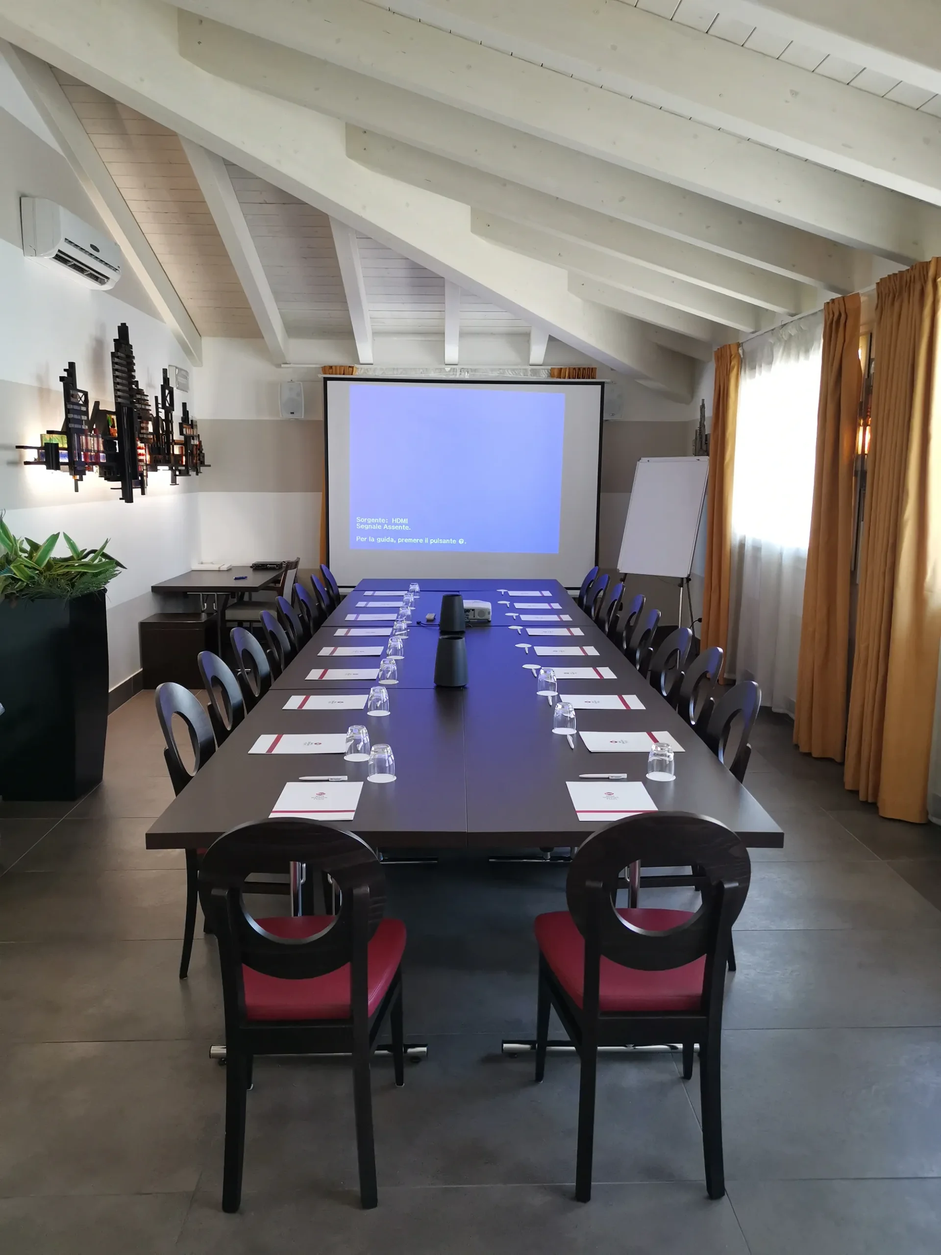 Per garantire il massimo della comodità e della produttività, mettiamo a disposizione dei nostri ospiti un’ampia gamma di attrezzature: videoproiettore con schermo di proiezione, lavagna a fogli mobili, impianto di amplificazione, cancelleria, confetteria, acqua per tutti i partecipanti e connessione Wi-Fi gratuita.